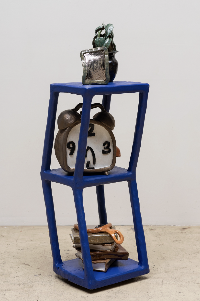 Nick Cave, Hew Locke, and Woody De Othello all use elements of the decorative in pieces that speak to histories of communication, violence, sentimentality, visibility, and legibility. In these three artists’ work, the medium conveys these themes and ideas as much as representation does. Hew Lock uses tchotchke-esque materials with histories of trade, empires, and movements, while Woody De Othello manipulates clay to take bloated form to everyday objects. Nick Cave’s sculptural Soundsuit is brandished with beautiful objects, colors, and materials, while protecting the wearer.
